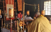 常楽会は、お釈迦様が入滅された日を偲び行われる行事で「涅槃会」とも呼ばれます。式師と呼ばれる僧により、4つの場面に分かれた「講式(四座講式)」が唱えられます。金剛峯寺では14日のみ、22時頃から参拝者に無料でうどんがふるまわれます(数に限りあり、状況により中止となる場合あり)。