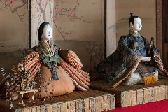 古い町並みが残る近江八幡市の旧市内の各所で、八幡商人が所蔵する貴重な雛人形が展示されます。旧西川家住宅、旧伴家住宅、近隣の事業所などで、江戸後期から昭和30年代の節句人形のほか、箪笥や長持などの小物があわせて紹介されます。代々受け継がれている節句人形めぐりを楽しめる“ひなめぐり特別観光パスポート”も、数量限定で販売されます(詳しくはホームページ参照)。