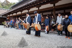 賀茂別雷神社(上賀茂神社)の氏子区域に伝わる行事で、氏子の15歳男子の青年入りを祝して行われます。前日の夜に集い、夜を明かした各町の男子が、24日の午前11時頃に、太鼓、鉦、笛の囃しで山の神、大田神社、賀茂別雷神社(上賀茂神社)に参拝し、成人となったことを奉告します。
