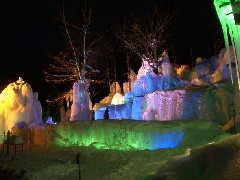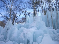 御嶽山のふもと秋神温泉に、「氷点下の森」が今年も登場します。そびえ立つ氷は、昼間はブルーに輝き、夜はライトアップされ、赤、青、緑など七色に輝きます。凛とした空気のなか、昼夜を問わず幻想的な氷の世界が広がり、大自然の魅力に癒されます。