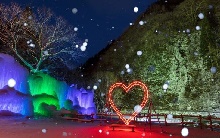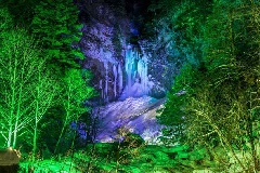 巨大な氷柱(つららの塊)へと姿を変えた平湯大滝が、ライトアップされます。飛騨の三大名瀑である平湯大滝の荘厳な姿が、この時期ならではの神秘的な光景に包まれます。イベント期間内には、打ち上げ花火も実施されます。