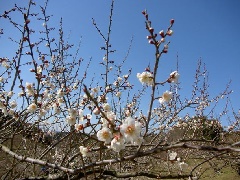 遠州地方で屈指の梅の名所、豊岡梅園には、約13haの敷地内に3000本の梅が植栽されており、例年2月中旬から3月上旬にかけて、見頃を迎えます。南高や古城、改良内田といった白梅の中に、紅梅も咲く様子は愛らしく、春の訪れを感じさせます。梅酒用の梅を生産する梅園ですが、花の見頃に合わせて期間限定で開園されています。園内には遊歩道も整備され、散策しながら花見が楽しめます。梅ジャムや梅おにぎりなどを売る店も開店するほか、せん定した枝のプレゼントもあります。