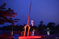 宇部市では、同市出身の庵野秀明氏の代表作の一つ『エヴァンゲリオン』シリーズの世界観を楽しめる「まちじゅうエヴァンゲリオン」が、2021年から開催されています。第5回目となる今回は、2年にわたるプロジェクトを経て制作された「トリビュート彫刻」“エヴァの手”がJR宇部新川駅前に設置され、特別描き下ろしイラストとともに、イベントを盛り上げます。ときわ公園に展示されている全長7m「ロンギヌスの槍」も、22時までライトアップされます。「エヴァンゲリオン」をイメージしたメニューをオーダーすると、オリジナルデザインのコースターをもらえるグルメフェアや、イベント限定のデザインのスタンプを集めるスタンプラリーなども同時開催中です。