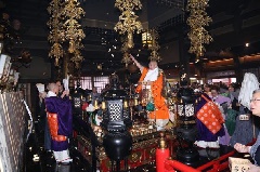 成田山不動尊は、多くの著名人が節分祭の豆まきに参加することで知られています。古来より受け継がれた儀式により「千升大福枡」が設置された全長150mの舞台上で、「世界の願い」である交通安全と開運厄除、繁栄隆昌を祈る豆まき式が行われます。本格的に春を迎える立春の前日に、すべての難を払う意味で豆がまかれ、不動明王の大きな慈悲により、その前ではすべての鬼も改心して鬼ではなくなるという言い伝えから、成田山では「鬼は外」とは唱えずに、「福は内」とだけ唱えます。