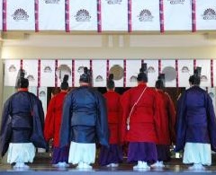 「としごいのまつり」ともいい、11月の新嘗祭と対になる重要な祭祀です。湊川神社では、五穀豊穣とともに皇室の隆昌と国家国民の繁栄を祈り、さらに商工業や産業の発展を祈ります。巫女による神楽舞も奉納されます。