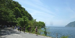 琵琶湖最北端の地、滋賀県長浜市西浅井町を舞台に、マラソン大会が開催されます。風光明媚な奥琵琶湖パークウェイの大浦から菅浦間を、1.5km、5km、15kmの3コースで競います。のどかな田園地帯やフィヨルド景観を楽しみつつ、新緑の中をランナーたちが走り抜けます。