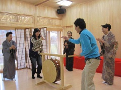 “北陸一の芸達者”と称される芦原芸妓とお座敷遊び体験ができます。あわら湯のまち広場内にある「伝統芸能館」で、芸妓による手踊りや太鼓の披露、お座敷遊びが楽しめます。芸の手ほどきをうけて、実際に体験し、最後は記念撮影で締めくくりとなります。