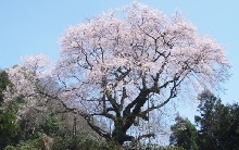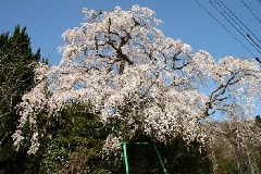 山本家屋敷跡にある樹齢400年以上の白枝垂桜は、古くから「林堂」と呼ばれ、県の天然記念物に指定されています。高さ15m、樹幹の太さ・目通り周は2.5m、枝は4mほどの長さがあり、毎年3月下旬から4月上旬に、白い可憐な花が咲き誇ります。