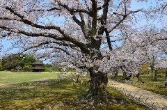 岡山後楽園にはソメイヨシノを中心に外園を含め約280本の桜があり、例年3月下旬から4月上旬にかけて見頃を迎えます。広々とした大名庭園を桜が彩り、ぜいたくな春景色が楽しめます。花葉の池に架かる栄唱橋のたもとでは、一本桜のヤエベニシダレが美しい姿を見せます。