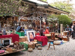露天神社の境内で、毎月第1金曜と第3日曜に蚤の市が開催されます。出店数は15~20店舗で、駄玩具から洋服骨董までと幅広い品揃えです。店舗同士の間隔がほどよく空いており、ゆったりとした空間でお目当てのものを探すことができます。まちなかにあるため気軽に骨董市の雰囲気を味わえ、昼間にはサラリーマンやOLも訪れます。