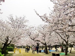 桜の名所として知られる道後公園では、例年3月下旬から4月上旬にかけてソメイヨシノやカンザクラなど約300本が見頃を迎えます。道後地区にある面積約8.5haの県立都市公園で、展望台からは、春を迎えた松山平野を一望できます。