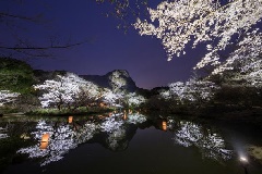 九州の名勝として名高い国登録記念物の御船山楽園で「花まつり」が開催されます。園内にはソメイヨシノ、オオシマザクラ、ヤエザクラなどがあり、とくに入門ゲート前に広がる池の周辺と、御船山の断崖下「つつじ谷」の左側に群生している桜が格別の美しさを見せます。そのほか約20万本のツツジや、推定樹齢170年の大藤などの花々が、バトンを受け継ぐように次々と咲き誇ります。見頃はそれぞれ例年、桜が3月下旬から4月上旬、ツツジが4月中旬から下旬、大藤が4月下旬から5月上旬となっています。九州最大級の夜桜ライトアップが行われ、5万坪エリアの2000本の桜が闇夜に浮かび上がります。