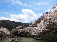 方広寺入り口の奥山公園とその周辺で、ソメイヨシノ約1000本が咲き誇ります。池に架けられた浮き桟橋から見る桜は美しく、見頃に合わせて夜にはライトアップも行われます。3月29日には、奥山公園ポケットパークにて「奥山桜まつり」が催されます。