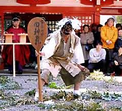 五穀豊穣を願う霧島神宮の「御田植祭」は、毎年旧暦2月4日に開催されます。ニニギノミコトが初めて水稲を作ったという謂れに由来し、境内斎場で「田の神舞」が奉納されます。300年程の歴史をもつとされる「田の神舞」は、県の無形民俗文化財に指定されており、神宮の社人である児玉、橋元両家によって先祖代々引き継がれています。「おきな」や「おうな」、しゃもじを担いだ「田の神様(たのかんさ)」などにより、鹿児島弁で面白おかしく農耕劇が披露されます。