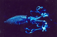 活きたほたるいかの発光ショー