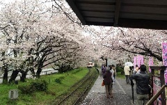 松浦鉄道浦ノ崎駅の周辺の桜並木が、例年3月下旬から4月上旬にかけて咲き誇ります。旧国鉄時代に地域住民の手により植樹されたものが、今では見事な桜並木となり、浦ノ崎駅は「桜の駅」と呼ばれています。列車に乗って車窓からの景色を楽しんだり、桜を背景に列車が走りゆくのを眺めたりと、思い思いに春の絶景を堪能できます。