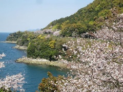 湯の児温泉の不知火海沿いには、「日本さくら名所100選」に選定されている湯の児チェリーラインがあり、例年3月下旬から4月上旬にかけて桜が見頃を迎えます。ソメイヨシノ、ヤマザクラ、サトザクラなどが咲き誇り、約5kmにわたって続く桜並木の絶景を楽しめます。海上花見船(有料)の運行もあり、船上からも花見が楽しめます。