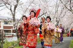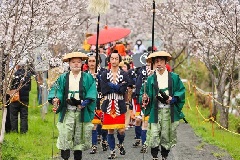 江戸時代、東海道の今切(いまぎれ)の難所を避ける道として使われた浜名湖の北を通る本坂道は、公家、大名の姫様が好んで通ったため「姫街道」と呼ばれました。浜松市浜名区細江町で開催される「浜松市姫様道中」は、当時の絢爛豪華な姫様の行列を再現した伝統行事で、初回以来、2026年で73回目を迎えます。姫様を中心に、供侍や奴、腰元など約80人から成る行列が、気賀関所周辺や都田川桜堤で華やかな時代絵巻を繰り広げます。2026年は天竜川・浜名湖地域合併20周年記念事業として、浜松市こども姫様道中も登場します。