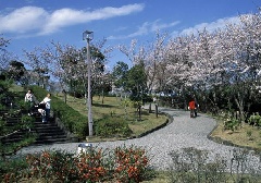 眉山公園では約1500本(大滝山約1200本、パゴダ・山頂部約300本)のソメイヨシノが、例年3月下旬から4月上旬にかけて見頃を迎えます。山頂周辺では、芝生広場や野鳥観察園路が整備されているほか、山頂広場からは徳島の中心市街地や瀬戸内海などが望め、咲き誇る桜に彩られた春の眺望が広がります。