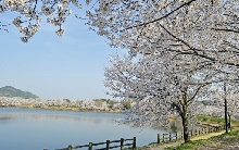 印鑰神社(いんにゃくじんじゃ)で毎年4月29日に行われる春季大祭では、「鮒取神事」が見どころとなっています。その昔、石川宿祢がこの地を訪れた際(旧正月)、若者たちが氷の張った鏡ヶ池に裸で飛び込み、鮒を手取りにして御前に供した故事にならい、受け継がれている伝統行事です。お神酒で清めた締め込み姿の若者数十人が投げつける、鮒や泥が当たると、その年は無病息災でいられるとされます。