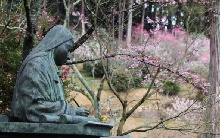 石山寺には山内一帯に3つの梅園があり、例年2月下旬になると、約40種400本の梅が見頃を迎えます。なかでも、菅原道真公の孫にあたる石山寺三代座主の淳祐内供の住まいだった普賢院跡地にある「薫の苑」は、歴代の座主が大切にしてきた古い梅を境内各所から移して作られた梅園で、見応えがあります。2月18日から3月18日には「石山寺梅つくし」と題し、丹精込めて育てられた盆梅が展示されます。