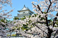 安土・桃山様式の面影を残す島原城には、約250本のソメイヨシノが植栽されており、例年3月下旬になると見頃を迎えます。青空と白い天守閣を背景に桜が咲き誇る様子は壮麗で、風情があります。島原城は、江戸時代初期に松倉豊後守重政(まつくらぶんごのかみしげまさ)によって築かれ、以来250年にわたり、島原藩政の中心として栄えました。