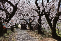 夕月神社の鳥居から神殿まで、約120mの山道には約200本のソメイヨシノが植栽されています。例年3月下旬から4月上旬にかけて開花し、丘陵地に広がる桜並木と、九州一の大河である筑後川を眼下に望む景色が楽しめます。