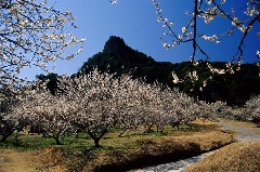 御船が丘梅林には「一目一万本」といわれるほど、たくさんの梅の木が植えられ、例年2月下旬になると、あたり一面が梅の花で覆われます。梅の開花に合わせて、茶屋がオープンし、ゆっくりと梅の観賞を楽しむことができます。