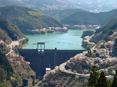 球磨川本流に建設された市房ダム湖周辺には、「一万本桜」と称される県内屈指の桜並木があり、例年3月下旬になると一斉に咲き誇ります。周囲13.4kmのダム湖を囲むように咲く約1万本の満開の桜は、息を呑むほどの美しさで、「日本さくら名所100選」にも選ばれています。ピンク色の帯となった桜のトンネルをドライブがてらに楽しむこともできます。