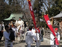 河桁御河辺神社の「御河辺祭」は、始まりが奈良時代末期に遡るとされる例祭で、毎年2月の初午の日に行われていましたが、現在は3月16日に近い日曜に開催されています。前日の宵祭に、周辺の町から選ばれた頭人が袴を着用し、提灯を持った若衆たちに囲まれて神社に参入します。その後、神社では「みくじ取り」などの神事が行われます。当日は頭人が馬に乗り、若衆たちとともに御輿と馬数頭を加えた行列を組み、神社までの道を練り歩きます。途中、御旅所の若松天神社で神事があるほか、妙法寺地先でも頭人の馬駆けが行われます。この日に雪が降れば豊作になるともいわれます。