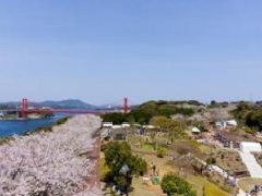 平戸大橋を望む平戸公園では、例年3月下旬に桜が見頃を迎えます。風光明媚な平戸瀬戸の青さを背景に、薄桃色の美しさが際立ちます。週末には、花見を楽しむ行楽客で賑わいます。