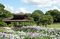 岡山後楽園のツツジとサツキ、ハナショウブ