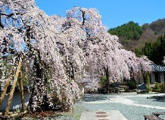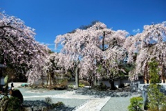戦国時代の武将であった、真田幸隆、昌幸の菩提所として知られる長谷寺(ちょうこくじ)の境内には、樹齢150年とされるシダレザクラの古木があり、例年4月下旬になると、アーチ型の大きな石門を覆うように美しい花を咲かせます。近隣には、真田信綱の菩提寺である信綱寺をはじめ、真田氏歴史館や、真田氏発祥の郷など、真田氏ゆかりのスポットが多数あります。
