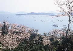 安芸津の正福寺山公園は、桜の名所としても知られ、例年4月になると約1000本のソメイヨシノが見頃を迎えます。小高い丘の上にあるため、園内からは眼下に広がる風光明媚な瀬戸内海の景色を一望することができます。無数の牡蠣筏が浮かぶ様子は、波の穏やかな瀬戸内海ならではの風情があります。