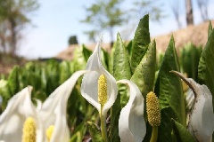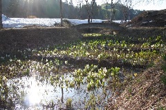 野口水ばしょう公園では、例年、雪解けとともに可憐なミズバショウの花を見ることができ、例年4月中旬から5月上旬にかけて見頃を迎えます。野口では農地のすぐそばの沢にミズバショウが群生し、低地での群生が珍しいことから、保存会により公園として整備されています。