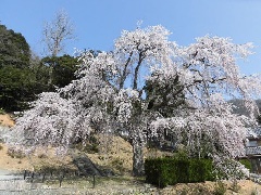 若狭地方屈指の銘木、妙祐寺のしだれ桜は、例年3月下旬に見頃を迎えます。樹高約17m、幹回り約2.5mにもなる大木で、小浜市の天然記念物に指定されています。開花に合わせてライトアップも行われ、幻想的な夜桜が楽しめます。