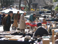 市民憩いの調公園で、毎月第4土曜に骨董市が開催されます。関東圏でも出店数が大規模な市として知られ、毎回大勢の来場者で賑わいます。