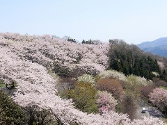 「日本さくら名所100選」に選定されている桜山では、国指定名勝および天然記念物の冬桜約7000本が、例年11月から12月にかけて咲き誇り、翌年4月にも咲くという珍しい二度咲きを見ることができます。全国でも珍しいこの冬桜は、日露戦争の戦勝を記念して村の住民の協力により、約1000本を植栽したのが始まりと伝わります。4月上旬から中旬にかけては、47haの広大な公園の各所で、ソメイヨシノなどとあわせて約1万本の桜が咲き誇ります。見頃にあわせて「春の桜まつり」も開催される予定です。