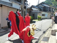 無病息災、五穀豊穣を祈願する「千谷麒麟獅子舞」は、毎年4月第3日曜の秋葉神社の春祭りと、9月の三宝荒神の秋祭りの年2回奉納されます。麒麟獅子が町内を練り歩きます。