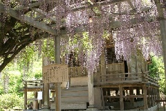 江戸時代の農村指導者、佐倉宗吾の遺業を偲び分霊された七山の宗吾霊廟では、例年4月下旬になると、樹齢100年以上とされる藤が美しい紫色の花を咲かせます。藤棚は、約600平方mもあり、初夏の風に揺れる花房が見る人を魅了します。