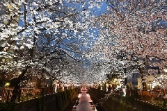 都内の花見の名所の一つ、目黒川の桜並木が見頃を迎える中、目黒川合流点遊び場で「中目黒桜まつり」が開催されます。さまざまなパフォーマンスが催され、大いに賑わいます。目黒川では約3.8kmの川沿いの両岸に、約800本のソメイヨシノなどが咲き競い、特に上流は川幅が狭くなるため、両岸の桜の枝が重なるように咲く様子を見ることができます。目黒川沿いの南部橋から皀樹橋の間では、ライトアップが行われ、夜桜も楽しめます。