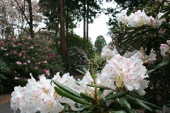 日本庭園の丘陵地、広さ2haの「しゃくなげの森」には、世界数か国の原種や交配種約2000本のシャクナゲが植栽され、樹齢40~50年をはじめ100年を超える木が、例年3月下旬から5月にかけて、早咲き、中咲き、遅咲きと順次開花します。高山に咲く花として知られるシャクナゲが森一面を色鮮やかに彩り、訪れる人の目を楽しませます。