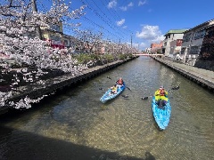 絶景日本一に選ばれた米子城の外堀で、インストラクターと一緒にカヤックを楽しめます。外堀の一部は加茂川として残っており、春には桜並木が満開となるおすすめの観光スポットです。外堀から蔵やハートの石垣を愛でながら、ゆったりと乗船場周辺の景色を楽しむことができます。※動きやすく、濡れてもよい服装で参加ください。