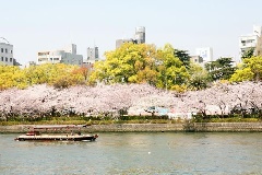 毛馬桜之宮公園では、大川の両岸に植えられた桜が、例年3月下旬から4月上旬に見頃を迎えます。ソメイヨシノやサトザクラ、ヤマザクラなどの桜並木が、4.2kmほど続きます。右岸沿いには造幣局、泉布観などの明治初期を代表する建物が並び、桜との美しいコントラストを楽しめます。