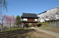 飯山城址公園一帯は桜の名所として知られており、例年4月中旬になるとソメイヨシノをはじめ、春を待ちわびた花々が一斉に咲き始めます。上杉謙信築城の城跡を桜が彩り、この時期ならではの美しい景観を織り成します。