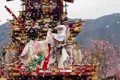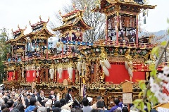 気多若宮神社の例祭で、国の重要無形民俗文化財に指定されています。古式ゆかしい「御神興行列」を中心に、“動”の「起し太鼓」と“静”の「屋台曳行」により、盛大な時代絵巻が繰り広げられます。19日から屋台が町内を曳行するのを皮切りに、夜には、数百人のさらし姿の裸男が担う櫓に大太鼓を載せ、太鼓を打ちならしながら町中を巡行する「起し太鼓」が行われ、深夜まで続きます。期間中は、屋台曳行やからくり人形、子供歌舞伎なども催され、町中が祭一色となり賑わいます。2016年に、ユネスコ無形文化遺産登録された「山・鉾・屋台行事」37の祭礼のひとつです。
