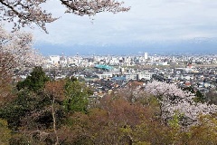 富山市の西部に位置する呉羽山公園にはソメイヨシノ、エドヒガン、ヤマザクラなど多彩な桜が咲き、絶好のお花見スポットとなっています。展望台からは立山連峰の大パノラマを一望することができるほか、周辺には、さまざまな動物を飼育する富山市ファミリーパークや、幾多の史跡を内蔵する民俗民芸村などがあります。