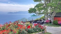 名勝三方五湖や若狭湾が360度一望できるレインボーライン山頂公園では、例年5月下旬から6月中旬にかけて、中央テラス付近のバラ園が見頃を迎えます。バラの栽培は難しいと言われた場所ですが、スタッフたちの地道な努力により、丹精込めて育てられた約110種600株もの可憐なバラが咲き誇ります。特に、ピンク色のサツキとのコラボレーションは必見です。バラの開花にあわせてローズフェアも行われ、ローズフレーバーのスイーツや飲み物も楽しむことができます。バラは、秋(10月下旬~11月中旬)にも花を咲かせます。