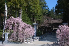 高野山の金剛峯寺では、例年4月上旬から下旬にかけて、シダレザクラやソメイヨシノ、ヤマザクラなどが、山門横や奥之院英霊殿御前、壇上伽藍境内に咲き誇ります。金剛峯寺は、約1200年前に弘法大師空海によって開かれ、真言仏教の聖地といわれています。国内はもとより、海外からも大勢の観光客が訪れます。
