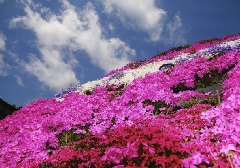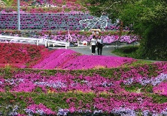豊かな自然と美しい棚田の風景が広がる周南市大道理では、例年4月上旬から下旬にかけて、棚田の法面に咲く10万本の芝桜が見頃となります。赤、ピンク、白、紫などの色鮮やかな芝桜を楽しみながら、自由に散策することができ、なかでも展望所から眺める景色は圧巻です。開催期間にあわせ、軽食コーナーや売店も出店します。